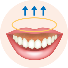 この唇を引き上げている筋肉を口輪筋と呼びます。この力加減を制御して、自然な形に修正します。